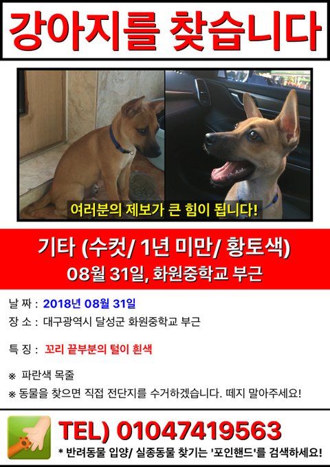대구 달성군 강아지를 찾습니다
