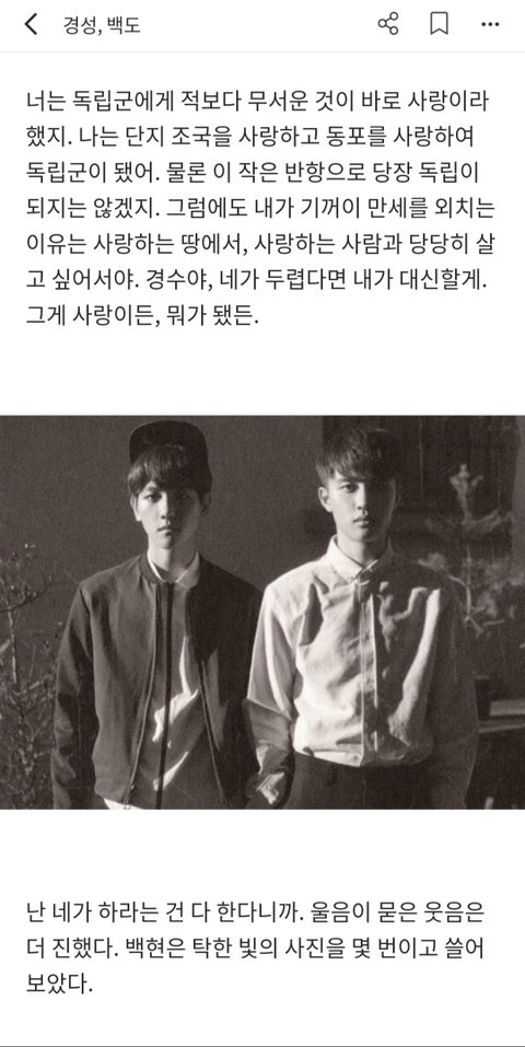 이런 아련한 거.... 사진도 진짜 같아서 혼자 망상나래 중임ㅠㅠㅠ 아니면 밑에 누가 올렸었는데 친일파 백×독립군 도 이것도 보고 싶어 대신 백은 원래 일본경찰이었는데 도한테 빠져서 경찰서 내부구조 다 알려주고 독립 운동 동참하는 그런 거ㅠㅠㅠㅠㅠ