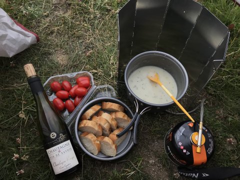 끼니는 출발 전 들고온 행동식(바게트와 방울토마토 그리고 인스턴트 크림수프)으로 때우고 근처 산장에서 사들고온 와인을 마시고 꽥 했습니당...