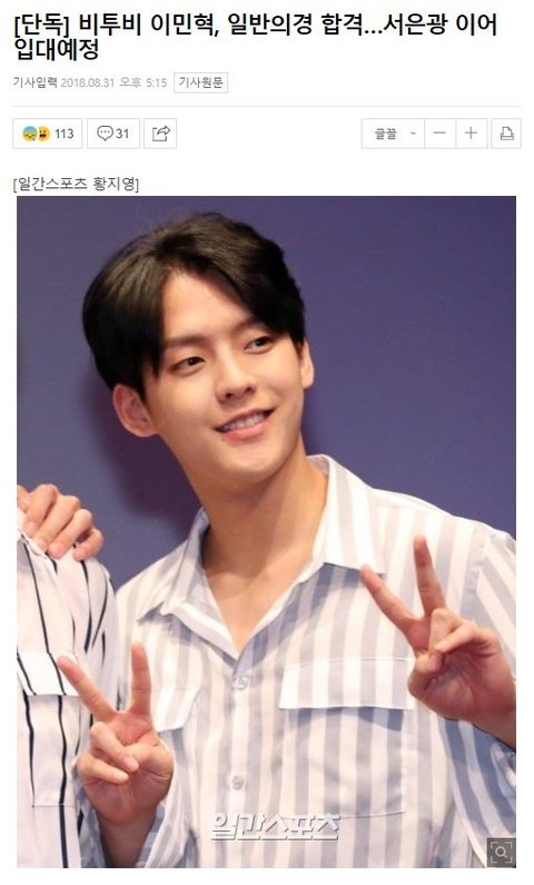 일반 의경에 합격한 비투비 이민혁