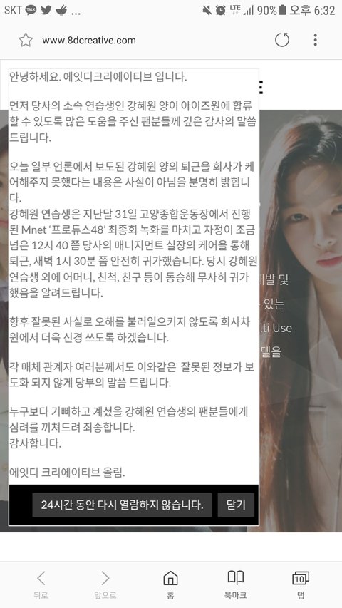 어제 강혜원 새벽에 혼자 퇴근했다고 함