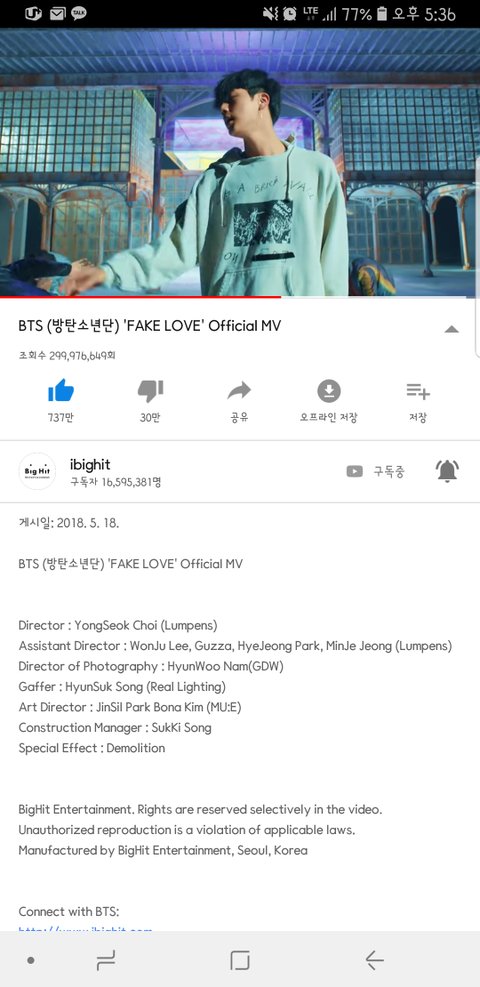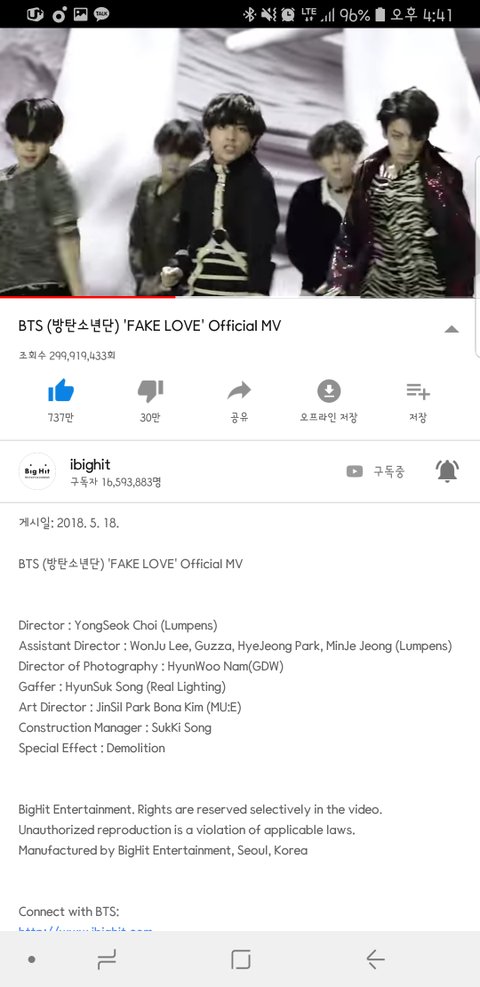 FAKE LOVE 3억뷰 -80,567 -> -23,351
