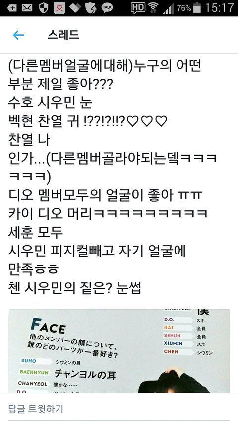 자기얼굴에 만족한다는 시우민 얼굴부심