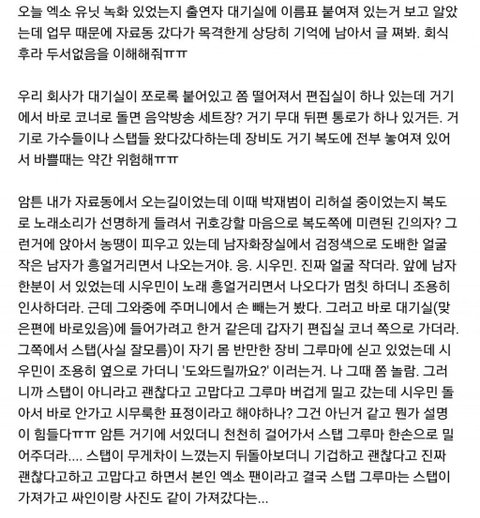 예쁘고 잘생긴사람이 배려심넘치고 다정하기까지ㅠㅠㅠㅠㅠㅠㅠㅠㅠㅠㅠㅠㅠ 시우민 진짜 천사맞지?