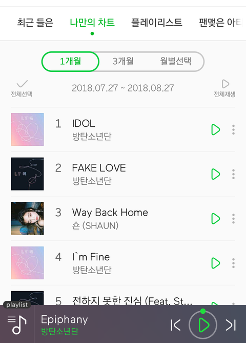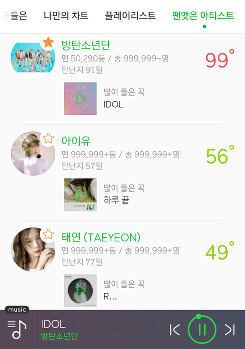 난 멜론으로 숀이랑 폴킴 노래 들은 기억조차 없고 계정도 나혼자 쓰는 스밍 계정이라 다른 사람이 들을리도 없는데 나만의 차트인가 그거 1,2였었음 그리고 둘다 역주행함 ㅈㄴ 나혼자 개 소름 돋았었는데..
