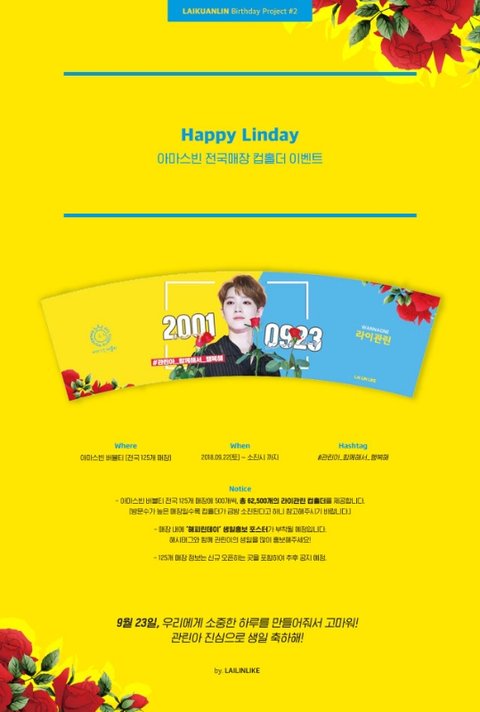 2001년 9월 23일에 태어난 관린아 생일축하해!