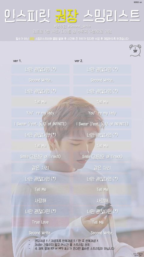 우현이 음원공개 후 6시 부터 돌려야 하는 권장 스밍 목록이래