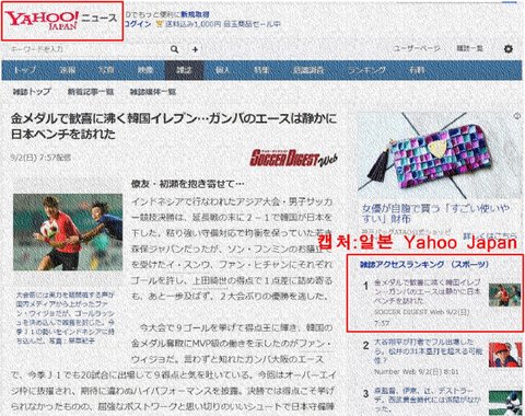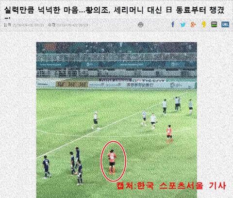 한국 스포츠서울 “실력만큼 넉넉한 마음…황의조, 세리머니 대신 日 동료부터 챙겼다” http://www.sportsseoul.com/news/read/... (.....) 황의조는 달랐다. 금메달이 확정된 순간에도 황의조는 크게 흥분하거나 좋아하는 기색을 보이지 않았다. 대신 일본 벤치로 터벅터벅 걸어갔다. 그리고 팀 동료이자 후배인 하츠세 료에게 다가가 위로의 말을 건냈다. 황의조는 일본 선수들이 벤치를 떠날 때까지 하츠세를 한참 껴안으며 격려했다. 하츠세는 황의조가 뛰는 감바 오사카의 유망주 미드필더다. 1997년생으로 황의조보다 5살 어리다. 팀 내 위상에도 차이가 있다. 황의조는 아시안게임 대표팀에 합류하기 전까지 J리그 20경기서 9골을 터뜨린 핵심 공격수다. 반면 하츠세는 9경기에 출전하는 데 그쳤다. 유망주인 하츠세에게 황의조는 일종의 ‘우러러 보는’ 존재다. 그런 황의조는 우승의 기쁨을 대표팀 동료들과 나누는 것보다 소속팀 후배를 안아주는 행동을 먼저 선택했다. 후배가 느낄 패배의 아픔을 배려하는 차원의 행동이었다. (.....)