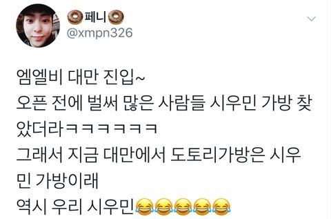 한국에서는 도토리가방 일부는 츄르가방으로 불렸는데 대만은 시우민가방으로 불린다니까 더 듣기 좋네여ㅋㅋㅋㅋㅋㅋㅋㅋㅋㅋ