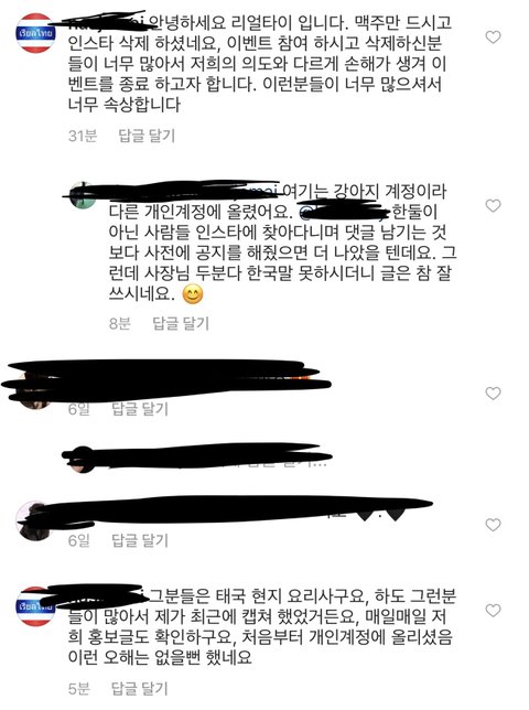 그런데 어제 사장님이라는 분이 제가 맥주만 먹고 사진을 지웠다면서 이런 사람들 때문에 이벤트 종료한다고 사진을 지운 계정에 다른 사진에다 댓글을 남겼더라구요