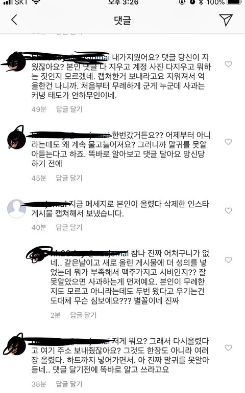공개적으로 쓴 댓글부터 괘씸하고 무례하길래 다른계정에 올리는 걸 누가 허락받고 하느냐고 하니까