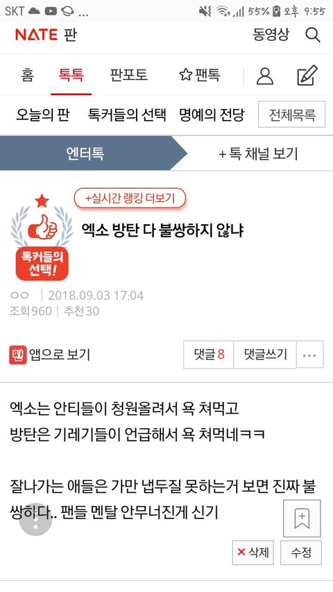 잘나가는 애들은 가만 냅두질 못하는거 보면 진짜 불쌍하다.. 팬들 멘탈 안무너진게 신기