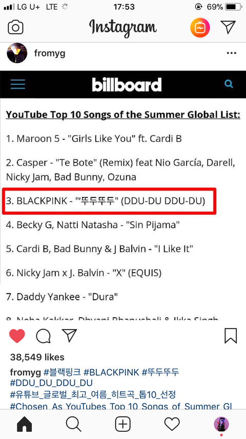 양사장님이 오늘 인스타에 직접 인증해주심!!!!!!!!!!! 한국 아티스트는 유일하대 ㅠㅠㅠㅠㅠ 대박이다 진짜! ㅠㅠㅠㅠ 3위야 무려 ㅠㅠㅠ