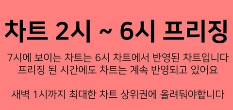 처음 겪어보는거라 생소하겠지만 새벽시간대에 차트프리징되어도 스밍반영은 계속 되고 있어 차트만 안보일 뿐.. 잘때도 풀스는 필수야