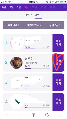 지1니에 들어가면 실시간 차트 밑에 쇼챔 배너 있어! 클릭하고 투표하면 되고 하루에 3번!!
