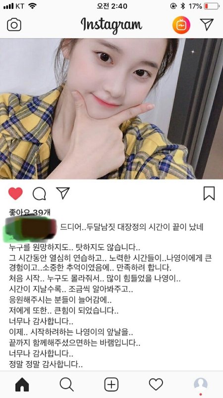 인스타는 프듀 끝나고 나영양 아버지가 인스타에 남긴 글
