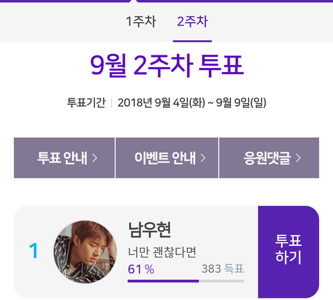 챔피언송 투표 가능하니까 투표하세요 자정 되자마자 시작 함 현재 우현 1위 매일 투표 하세요
