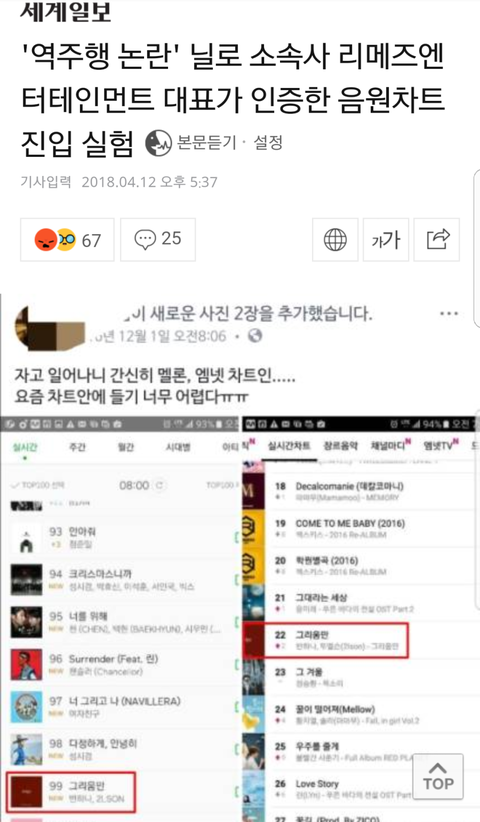 그 밖에도 내가 음원 사재기에 대해 나름 문체부라던가 음원싸이트 관계자라든가 찾아다니면서 물어본걸로 추측하건데 솔직히 음원 사재기에 굉장히 의심되는 회사도 있고 가수들도 있어, 근데 이렇게 양아치 방식으로는 안하지, 나름 큰 돈을 들이고 시간도 엄청 들이고 시기와 방식도 굉장히 신중하게 접근해서 최대한 사재기처럼 안보이려고 노력해.. 뭐 그렇다고 사재기하는게 잘했다는게 아니고 말 그대로 범죄를 대놓고 저지를 정도로 뻔뻔하지는 않다는거야