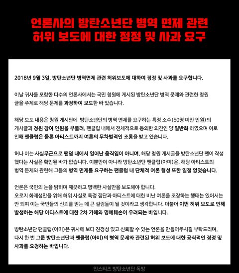 병역 문제 허위사실 보도에 따른 메일 총공을 진행 중입니다! 곧 8시 30분부터 1차 메일총공을 시작하니 많은 도움 부탁드려요ㅠㅠ.
