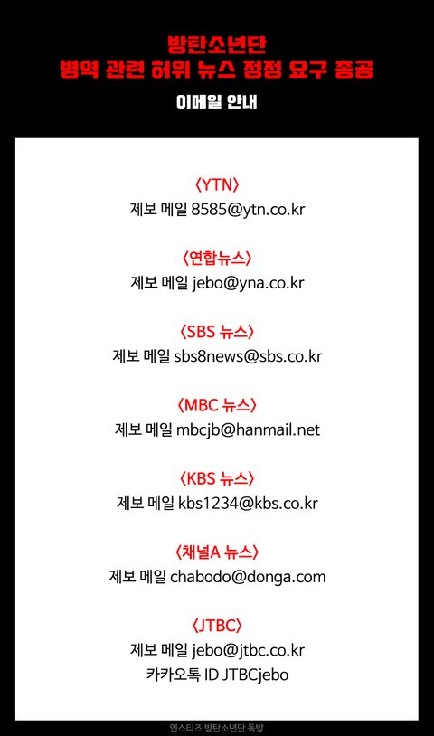 2018년 9월 3일, 방탄소년단 병역면제 관련 허위보도에 대하여 정정 및 사과를 요구합니다.