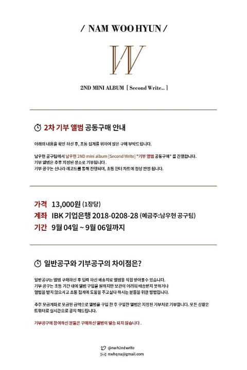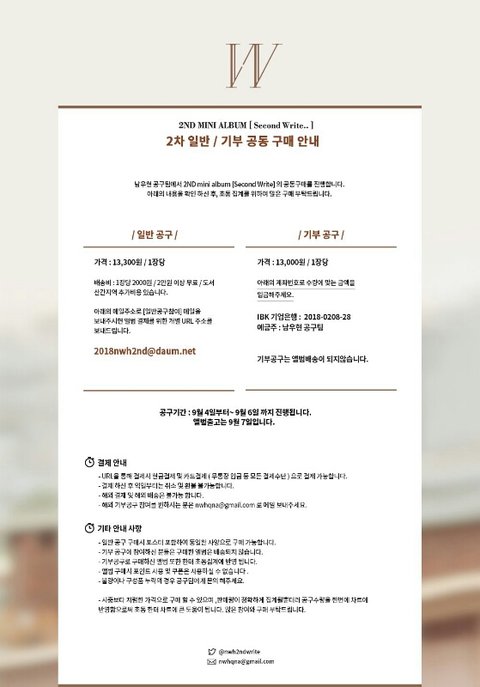 ▷일반공구- 2018nwh2nd@daum.net 메일로 [일반공구참여] 메일을 보내주시면 앨범 결제를 위한 개별 URL 주소를 보내드립니다.