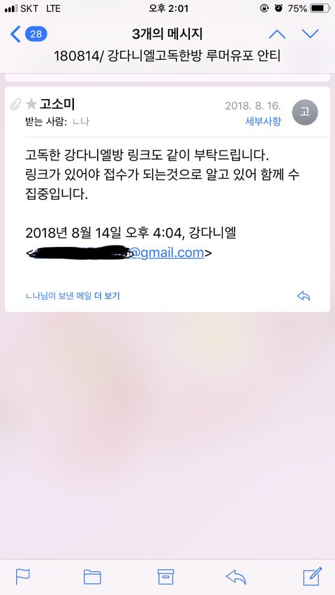 폰이느려져서 용량정리하느라 이메일 온거 정리하고있었거든 근데 중요메일함에 이런이메일이있더라고 나진짜깜짝놀랬어....왜지금본거지ㅠㅠㅠㅜ