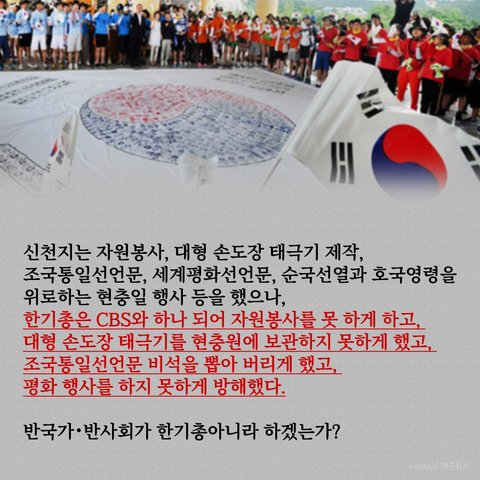 한기총은 신천지에서 나라를 위한 애국평화 봉사활동, 자원봉사 활동을