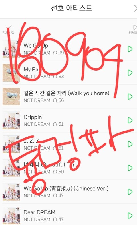 위의 예시를 따라서 어제부터 스밍한 nct dream 곡들의 누적횟수를 인증해줘~