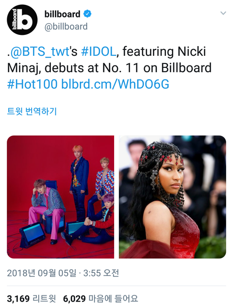 아이도루 BB 핫100 11위