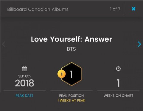 캐나다 빌보드 200 앨범 차트 최초 1위