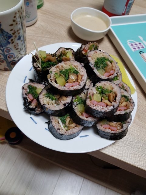 집에 김밥재료가 남아서 싸본 김밥입니다~