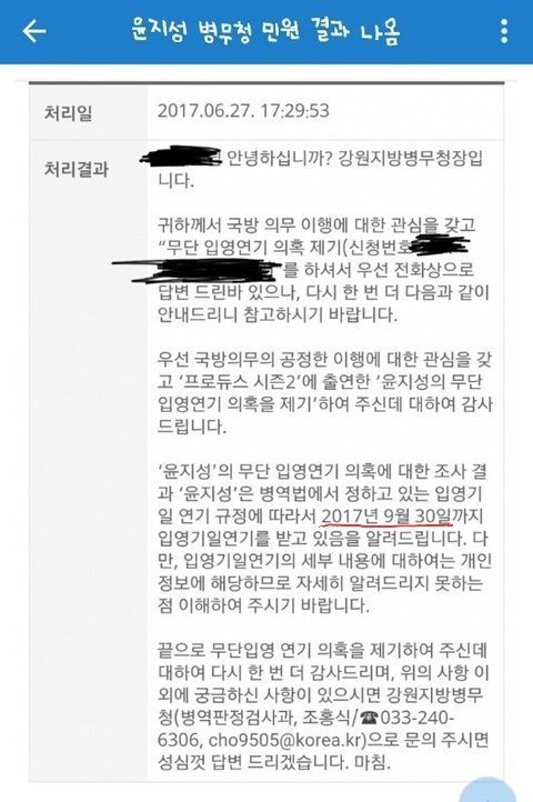 대학원 입학 과정에 모호한 점이 있는 건 요즘같이 병역법 개정되서 예민한 시기에 병역 연기에 편법이 있다는 태클이 들어올 수도 있는거라서 윤지성 입장에서도 안 좋으니까 투명하게 밝힐 필요성이 있다고 생각해