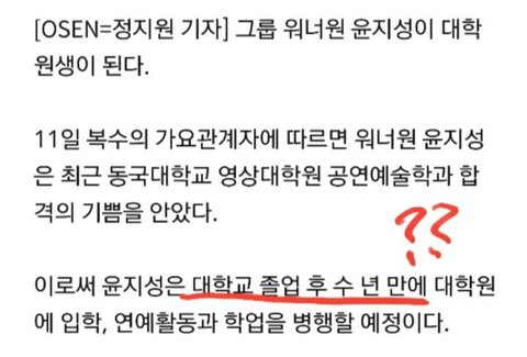 근데 윤지성 워너원 데뷔하고 작년 12월에 대학원 들어갔단 말이야