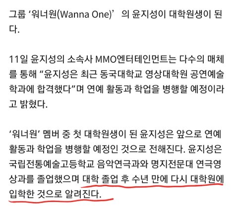 그리고 미필인 윤지성이 워너원 끝나자마자 바로 군대를 안가려면 2018년 1학기 대학원을 무리를 해서라도 꼭 들어가야만 했어