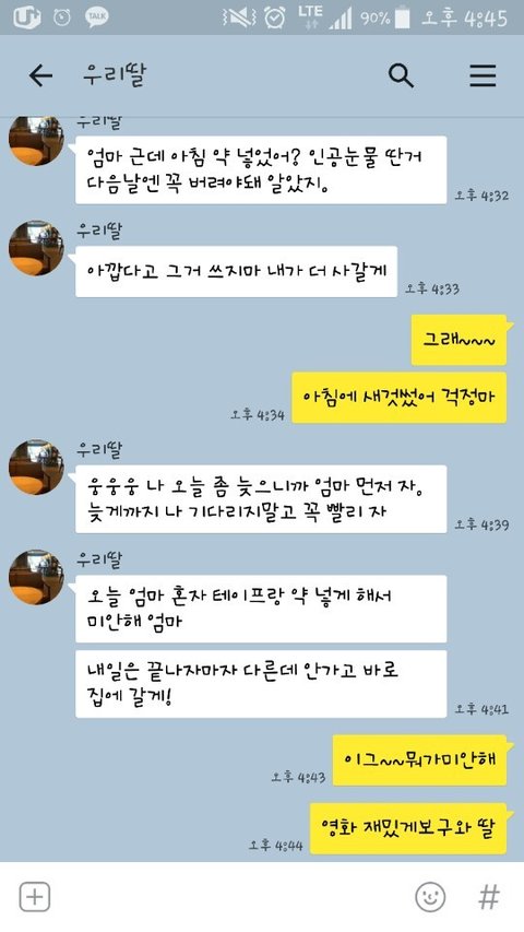 눈이 시려서.... 그리고 딸아이가 제 눈치 볼 때 마음의 짐을 준거 같은맘에... 제가 요즘 눈물을 달고 사네요.