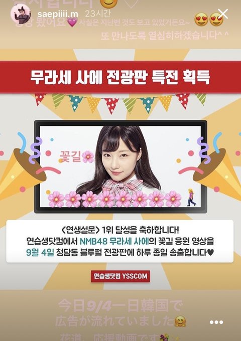 꾸준히 한국팬한테 감사글 쓰고 스토리도 올리는 사에삐 꼭 한국판 다시 만나러 올거라고ㅠ