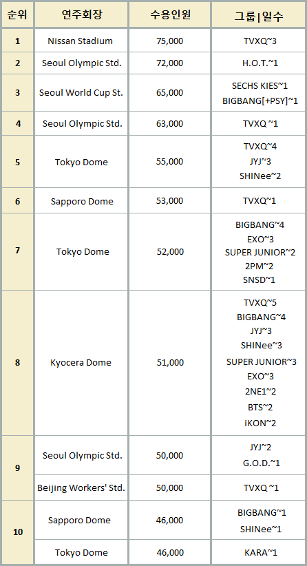 좌석 수용량은 최대 수용용량이 아니다..가수들이 항상 최대 수용량을 사용하는 것은 아니다.
