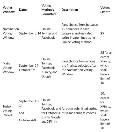 나도 방금 짹에서 본거라 급하게 가져오긴 했는데 대충 보니 미국시간으로 9월 5일~9월 14일까지고, 이게 다가 아닌거같아. 이건 노미네이션 퉆이고 그 다음부터는 메인 퉆이랑 터보 퉆이 있는데 투표 가능 횟수도 달라짐. 일단 사진 첨부할게!!