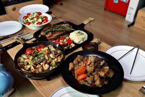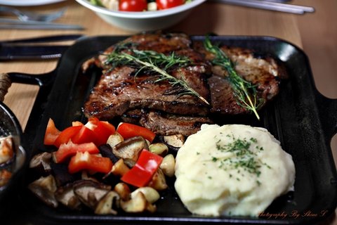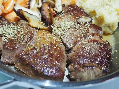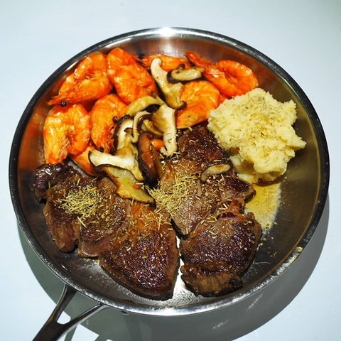 안심스테이크는 가끔 소스 없이 소금만 찍어먹는 것이 맛있을 때가 있더라구요. 소고기는는 버섯과 메쉬드포테이도가 참 잘어울립니다. 새우는 머리버터구이 할때처럼 버터에다가 볶은다음 통째로 먹습니다.