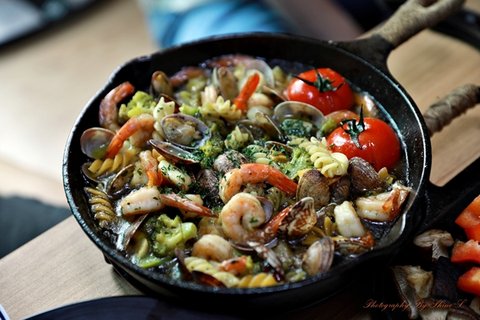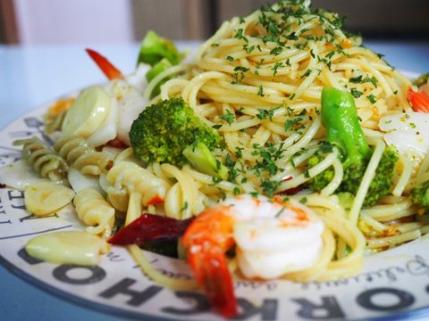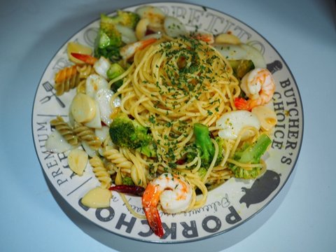 지겹게 나오는 오일파스타입니다ㅋㅋㅋ 이번에는 가래떡에 새우에 온갖잡꺼 다들어갔네요, 사실 파스타면에 소금뿌려서 올리브오일만 적셔먹어도 맛있을거 같습니