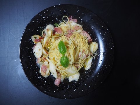 오일파스타에 오일이 점점 늘어나더니... 결국엔 국물이 되어버렸습니다. 근데 너무 맛있네요ㅋㅋ 와인을 부르는 맛!! 직접 딴 바질을 올리면 향이 매우 좋습니다. 근데 간맞추기가 어렵네요, 소금이 오일에 늦게 녹아서.... 이럴때 계량의 필요성을 느낍니다.