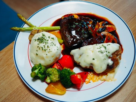 맛있고 이쁘게 만들었는데 함박스테이크에 케챱을 많이 넣는 바람에 망했던ㅠㅠ 그래도 맛있게 잘 먹었습니다~ㅋㅋㅋ