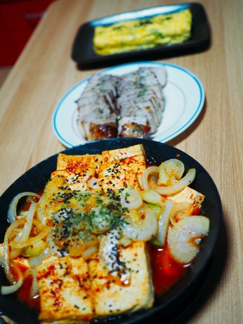 처음으로 두부 조림을 해봤습니다. 생각보다 손이 많이 가는 요리더군요, 하지만 맛은 최고!! 훈연흉내낸 광파오븐 삼겹살과 치즈듬뿍 계란말이 입니다.