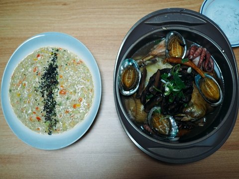 심하게 운동하고 온날 원기회복을 위하여... 냉동능이인데 능이향이 많이 나진 않네요;; 냉장고의 시들어가는 채소들을 넣어 죽까지 만들어먹으면 힘이 불끈불끈 납니다ㅋㅋ