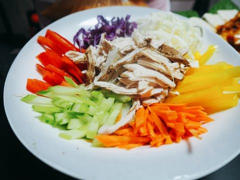 가스불을 쓰지 않고 전자렌지로만 불맛을 낸 오징어 볶음과 두부, 야채듬뿍 닭가슴살이 들어간 시원한 초계탕은 아무리 먹어도 살이 찌지 않을것 같은 음식입니다. 톡쏘는 겨자맛이 일품!!