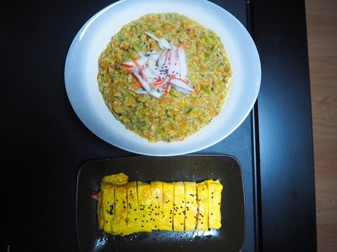 요새 죽에 빠져 살고 있습니다. 기본베이스는 닭가슴살과 오트밀이고 그외에 각종 견과류와 감자 양파 당근등... 처치 곤란한 애들은 죄다 갈아서 넣으면 정말 맛있는 죽이 완성됩니다. 단점은 술술 넘어가고 소화가 잘되서 너무 많이 먹게되므로 살이 찜;;; 계란말이는 셀프서비스~!!