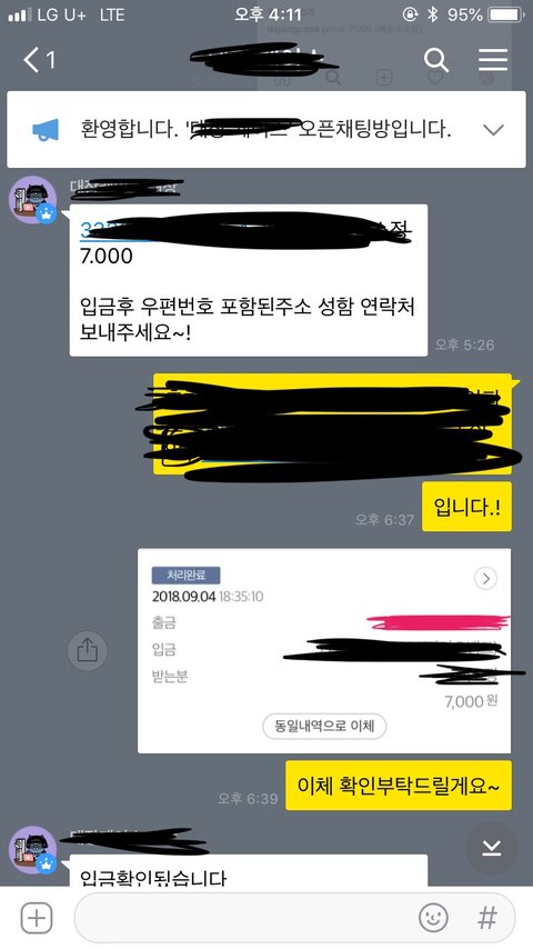 9월 4일 화요일날, 계좌받고 잠수타면 차단한다길래..확인하자마자 바로 입금했습니다.