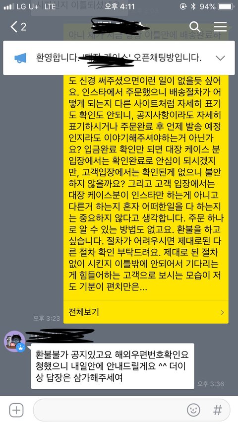 뭐지..? 좀 띠꺼운데...? 그리고 공지라고 해봤자 저 인스타 몇줄인데.. 저걸로 다 이해하고 알라는건가..? 싶어서 좀 저도 기분이 안좋아서, 저렇게 했으면 좋겠다고 (나름 세게?) 말씀을 드렸어요.