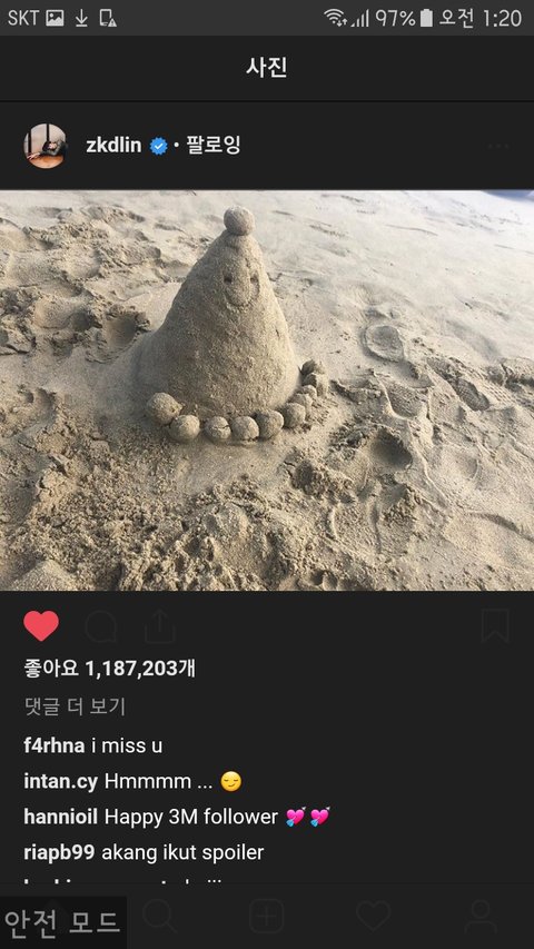 할거 없어서 카이 인스타 보다가 제일 최근 게시물 봤는데 좋아요 118만개... 카이 인스타 팔로워가 300만이던데 개오지는거 아니냐;;