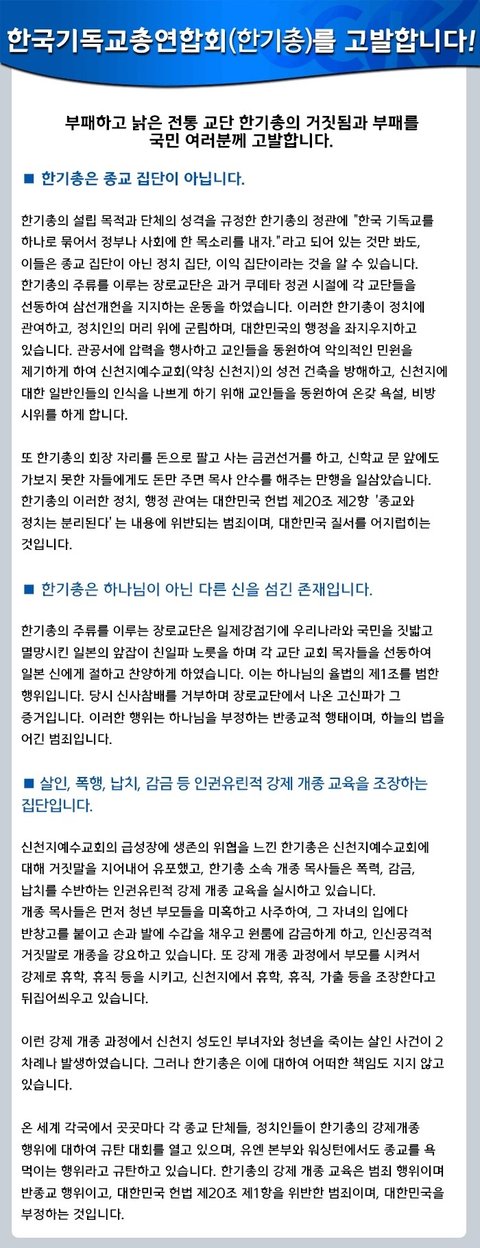 욕되게 하는 한기총의 폐쇄를 온 세계가 외치고 있다.